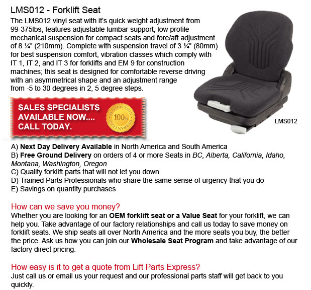 TOLL FREE: 1.888-633-0283 seatsforforklifts.com Email Us Lift Parts Express prides itself on the diversity and volume of parts we carry. Regardless of the model of lift truck you run, we have the parts you need. The cost savings we can offer will... More | ||