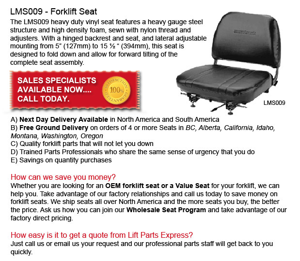 TOLL FREE: 1.888-633-0283 seatsforforklifts.com Email Us Lift Parts Express prides itself on the diversity and volume of parts we carry. Regardless of the model of lift truck you run, we have the parts you need. The cost savings we can offer will... More | ||