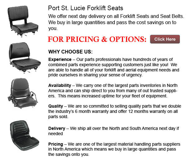 Seats for Forklifts Port St. Lucie - Port St. Lucie, Florida is located on the North Fork of the St. Lucie River. The city of nearly 155,000 inhabitants is in St. Lucie County and is also part of the Port St. Lucie, Florida Metropolitan Statistical Area. The whole MSA has a population of 406,296. The city of Port St. Lucie has grown rapidly during the last 10 years, from approximately 88,800 in 2000 to the current 155,251. The recent growth has been characteristic of the city's rise. Port St. Lucie's population more than tripled between 1980 and 1990.